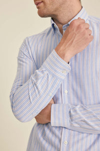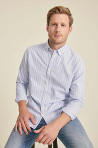 • Soft brushed cotton striped oxford shirt with a button-down collar